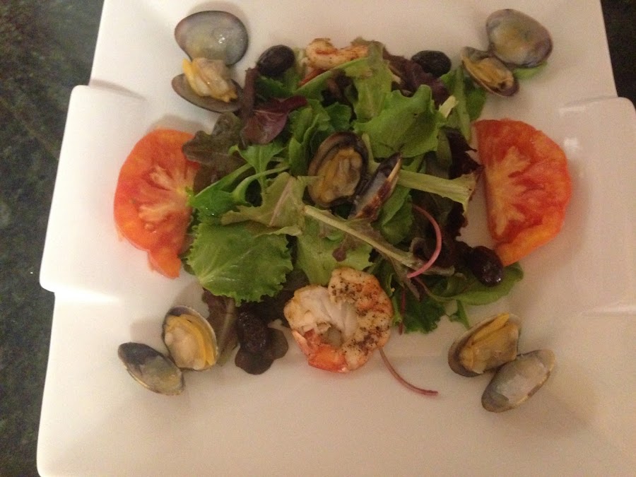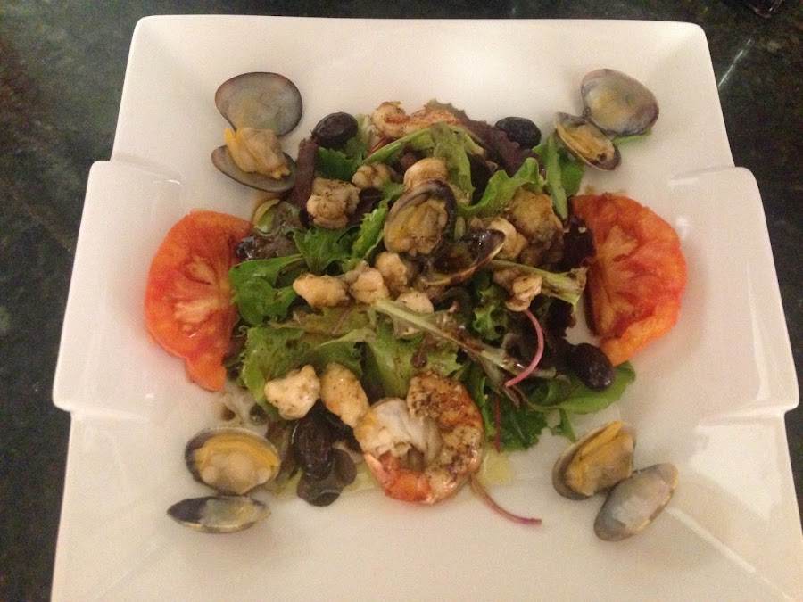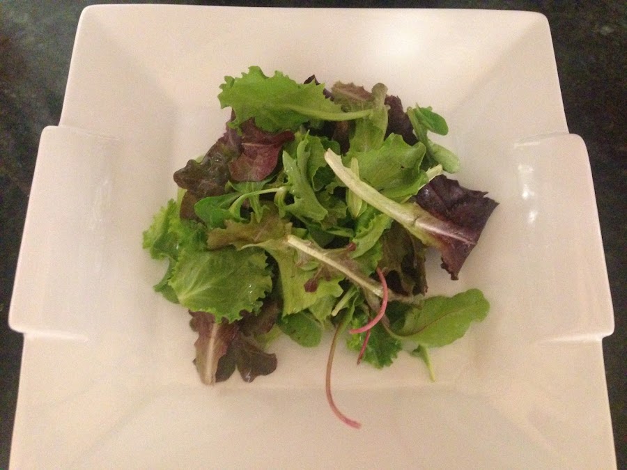 Empezaremos a montar el plato. En el centro del plato pondremos la ensalada.