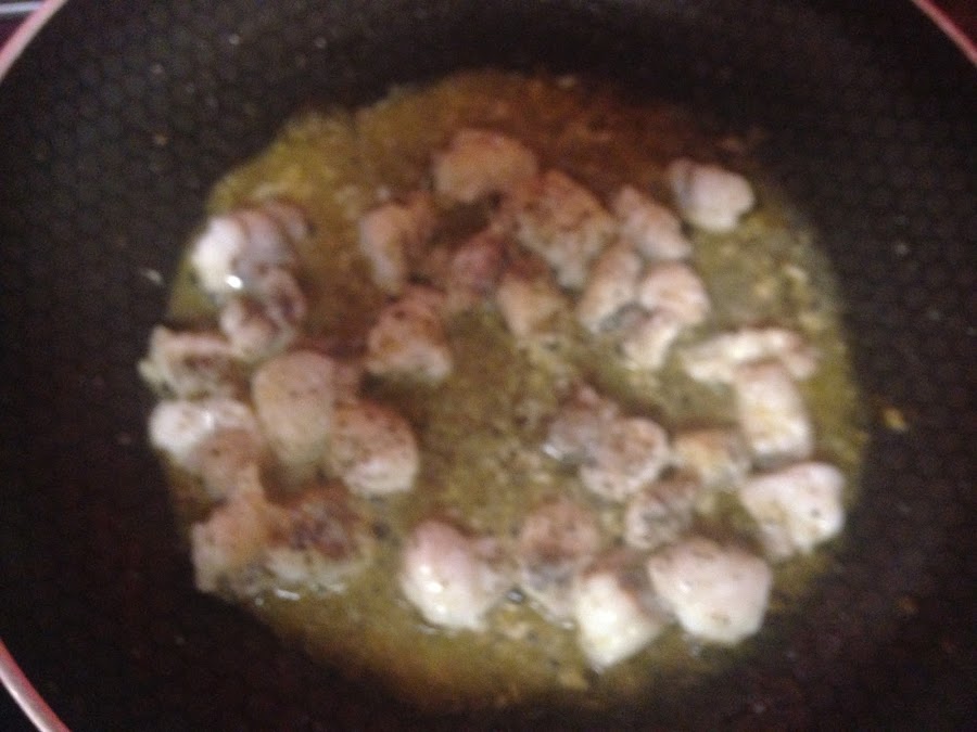 Cortaremos el rape a trozos pequeños y lo pasaremos por una pella con aceite.