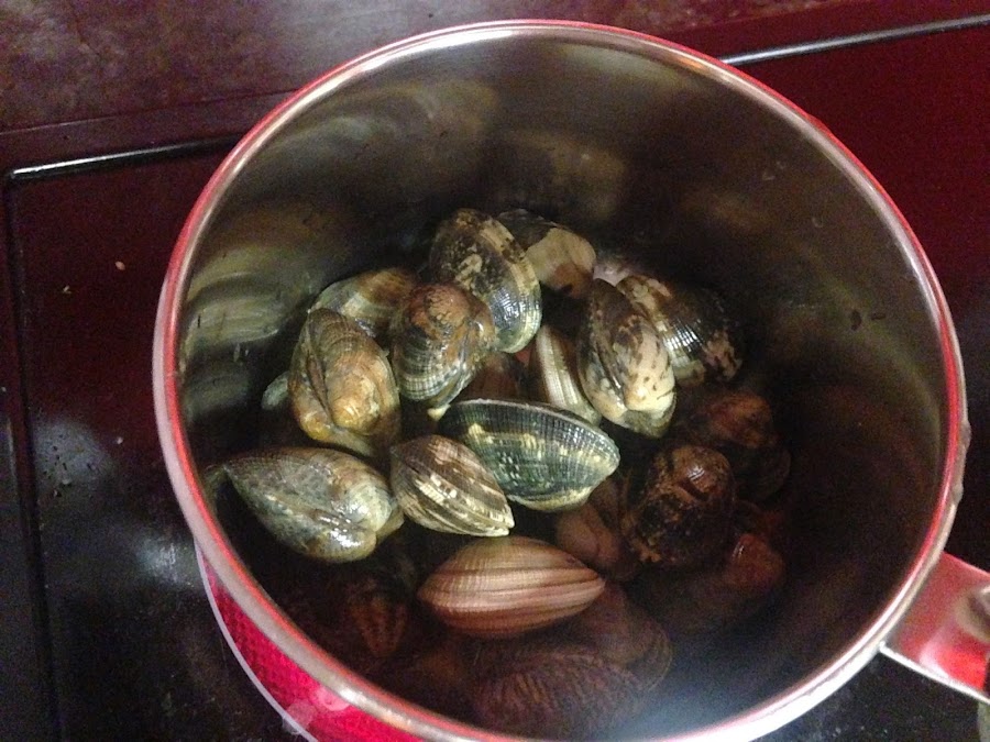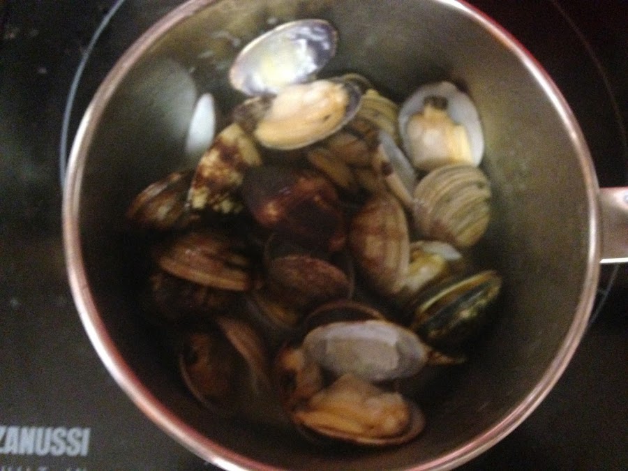 Una vez pasada la hora, pondremos un cazo con aceite para saltear las almejas.