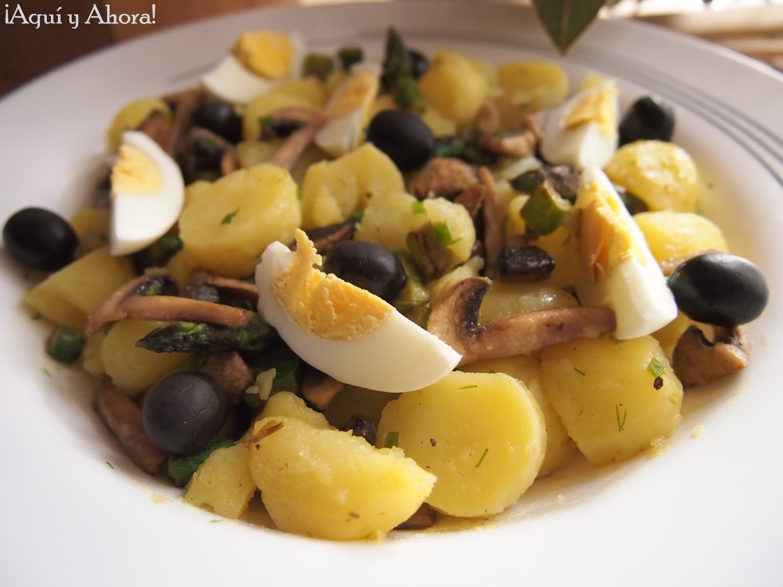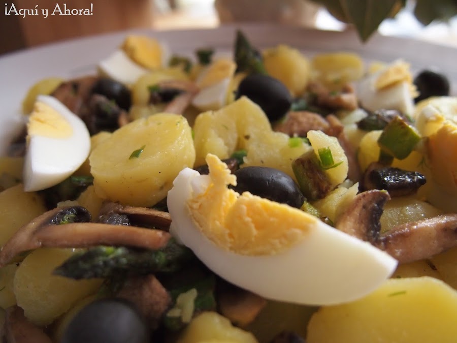 Bueno dejo de enrollarme que yo venía con una riquísima y deliciosa Ensalada templada de champiñones, esparragos y patatas!!!!! Es una ensalada muy suculenta, llena de sabores y perfecta como primer plato o como de acompañante o simplemente como plato único...