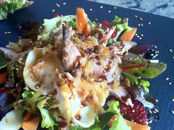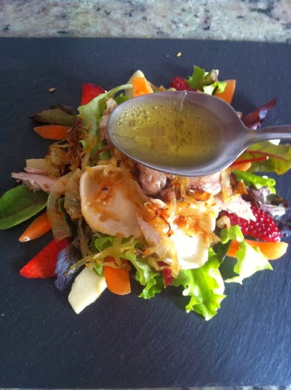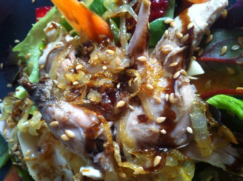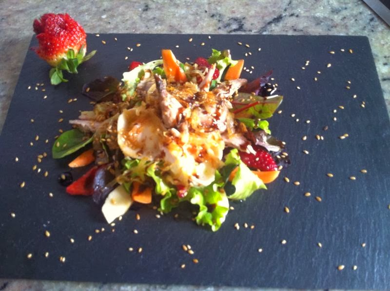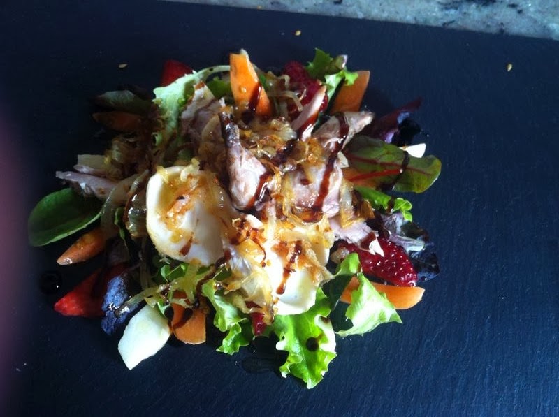 Hoy, os traigo otra ensalada. He tenido la suerte, de recibir una lata de codornices de mis amigos del productotgourmet, y se me ha ocurrido preparar una ensaladita templada con unos ingredientes de temporada. Simplemente deliciosa.