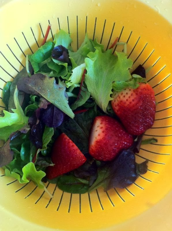 Mientras tanto, lavaremos los brotes de ensalada y las fresas.