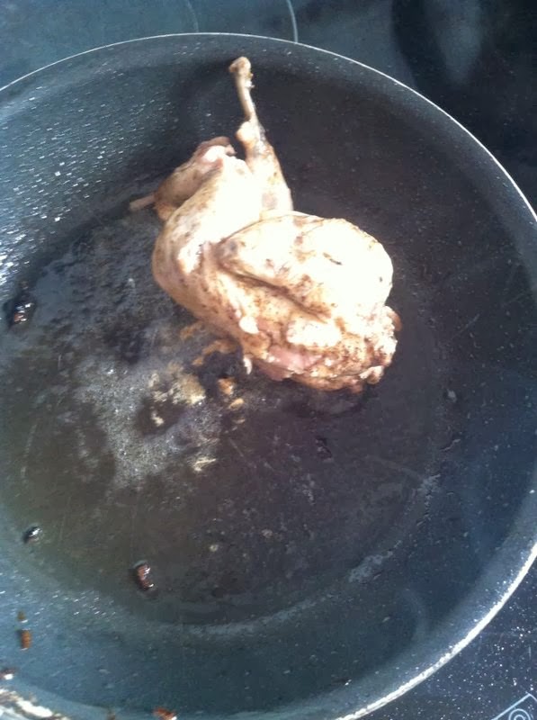 Y pasaremos por la sartén dos rodajas de rulo de cabra, y seguido una de las codornices para calentarlas. Podéis hacerlo enteras o desmigadas. Eso a vuestro gusto.