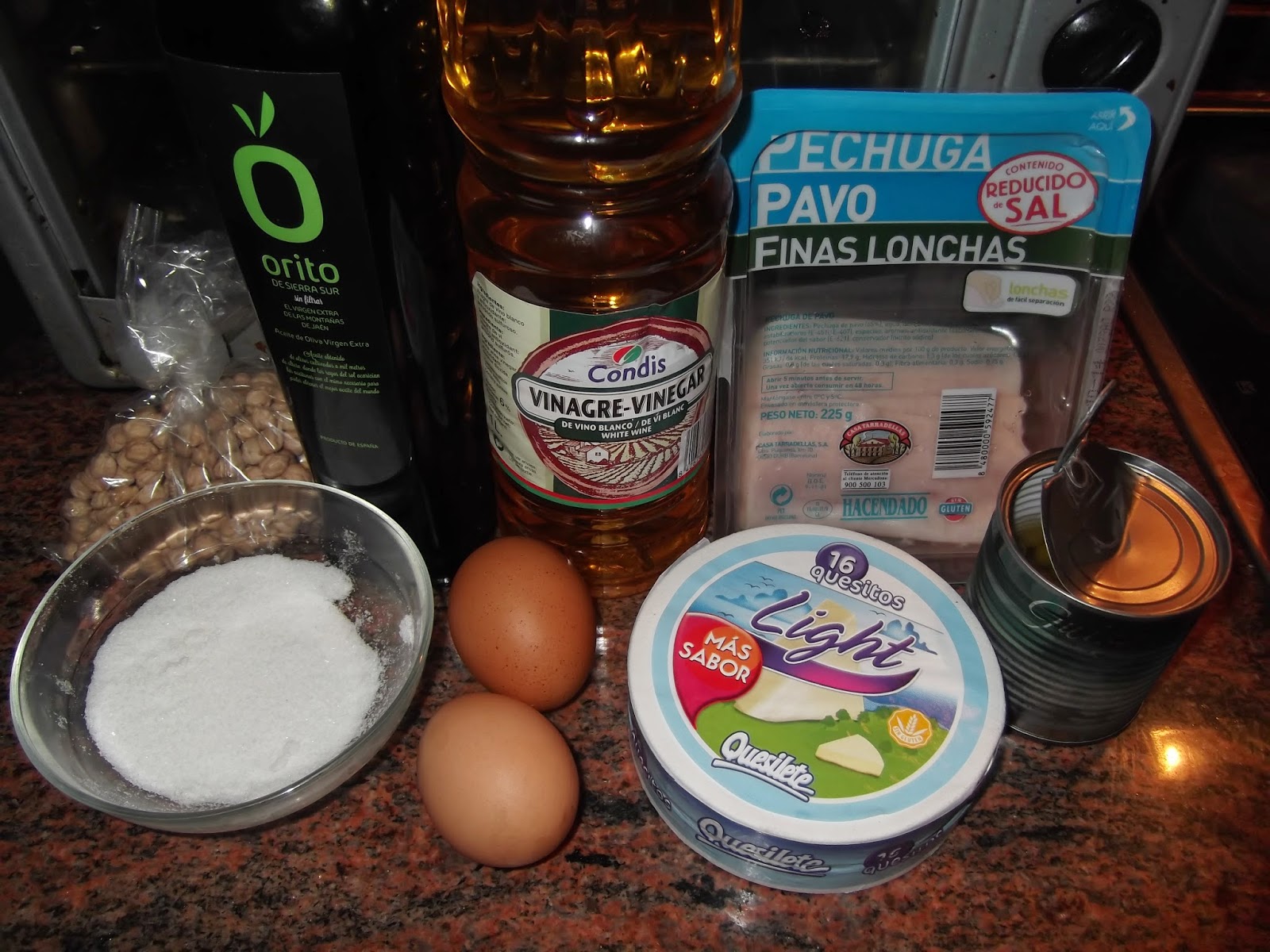 Mientras tanto ponemos otro cazo a cocer con agua y sal para los huevos. Una vez que el agua esté cociendo echamos los huevos y los dejamos diez minutos. Cuando los huevos están cocidos, los pelamos y los cortamos en pequeños trozos, al igual que el tomate, el pavo y los quesitos.