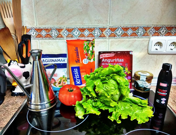 Continuamos con las recetas y como véis me voy decantando por comida tradicional mediterránea principalmente porque es mi dieta habitual. He de decir que soy de las personas que comen de todo y variado: fruta, verdura, carne, pescado, pastas y arroces, productos lácteos... vamos que me gusta alimentarme y/o cuidarme bien. Por eso hoy vengo con una receta que a mí particularmente me encanta que es la ENSALADA TEMPLADA DE angulas sucedáneas CON GAMBAS Y BONITO aunque como veréis le echo mogollón de cosas así que es un plato muy completo. Uno de los ingredientes especiales de esta receta es el BONITO DEL NORTE DE ANCOMAR en aceite de oliva, pescado a caña y elaborado en fresco, con un sabor espectacular.