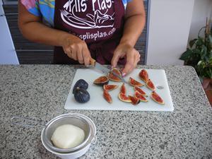 Para no olvidar nada, antes de empezar pon siempre todos los ingredientes a la vistaEscurre bien la mozzarella (incluso seca con papel absorbente). Lava y corta a cuartos los higos y ponlos en una fuente o plato.