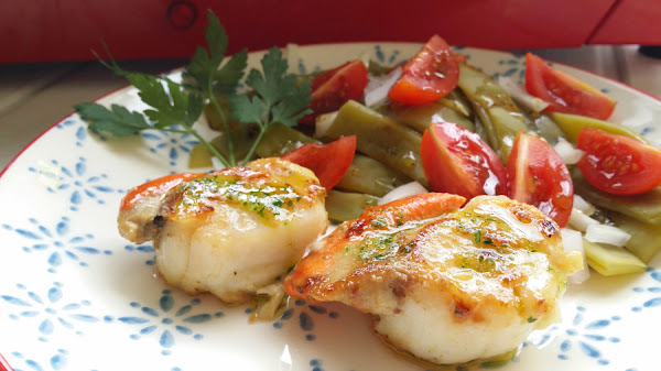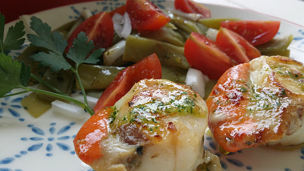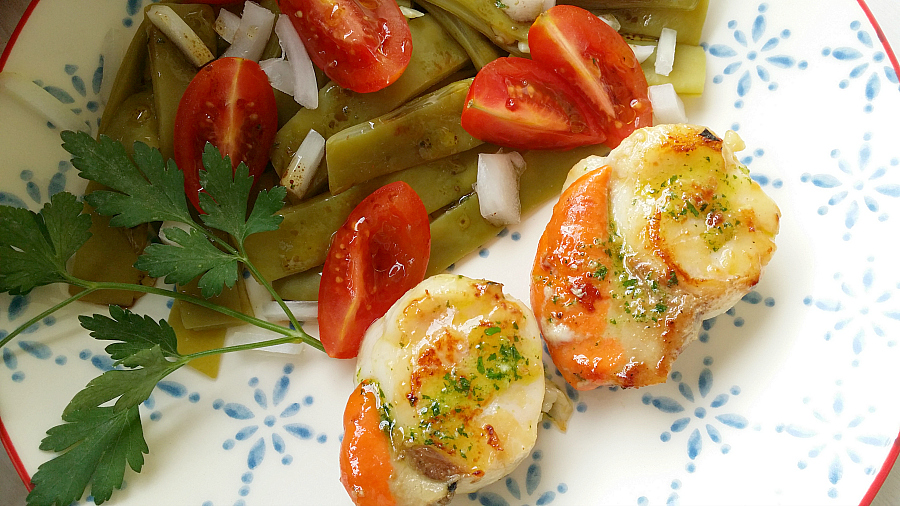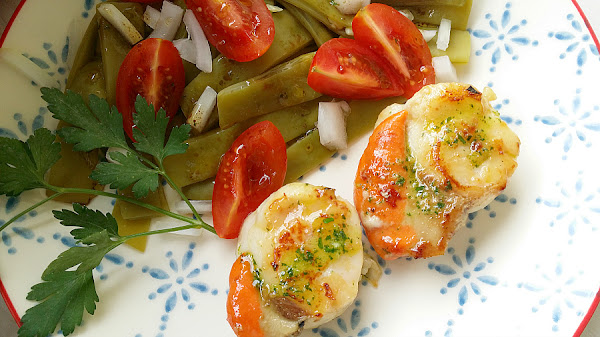 Ensalada templada de judías verdes y vieiras {a la plancha Simogas}