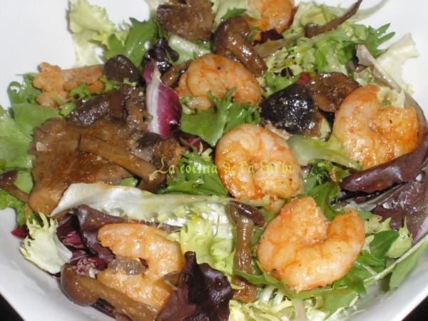 Variedad de lechugasSetas variadasLangostinosUn chorrito de brandySetasaoveVinagre de JerezSal