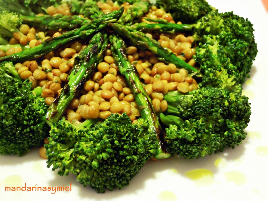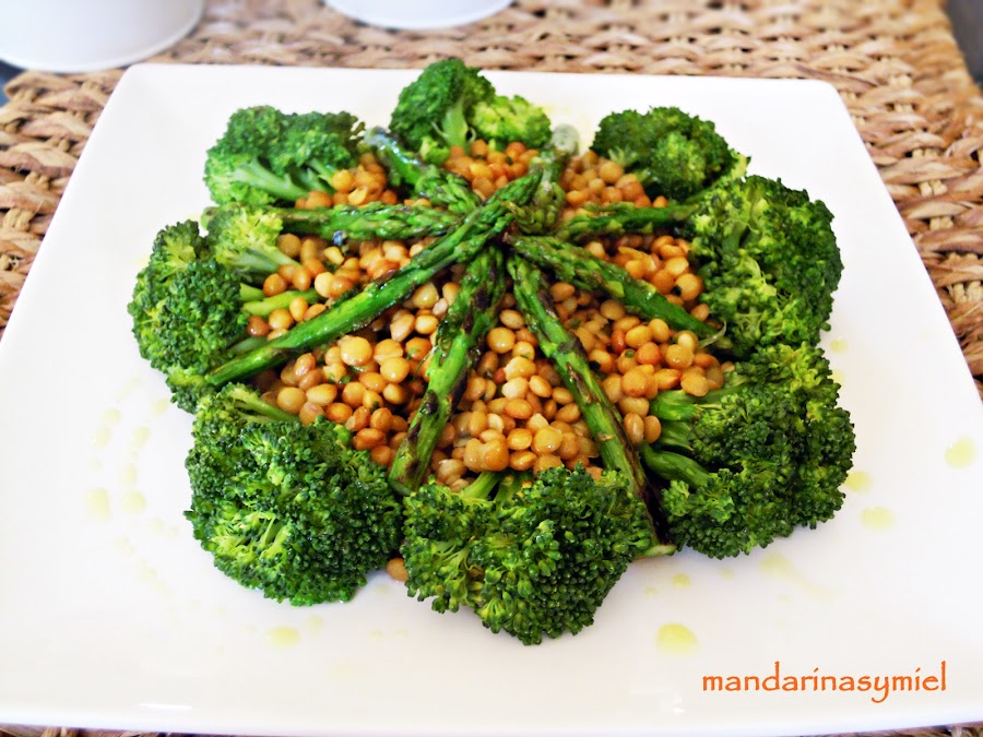 Las lentejas junto al brócoli y los espárragos son una fuente de hierro, vitaminas y fibra, con un escaso contenido en calorías. Es una ensalada perfecta para cualquier dieta saludable....¿que más se puede pedir?