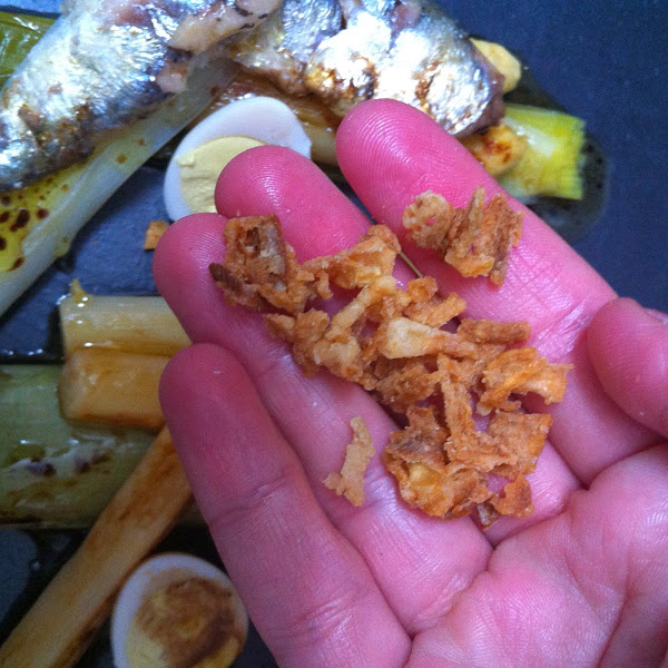 Solo nos quedan dos pasos. La vinagreta, y la cebolla crujiente.
