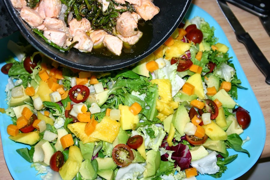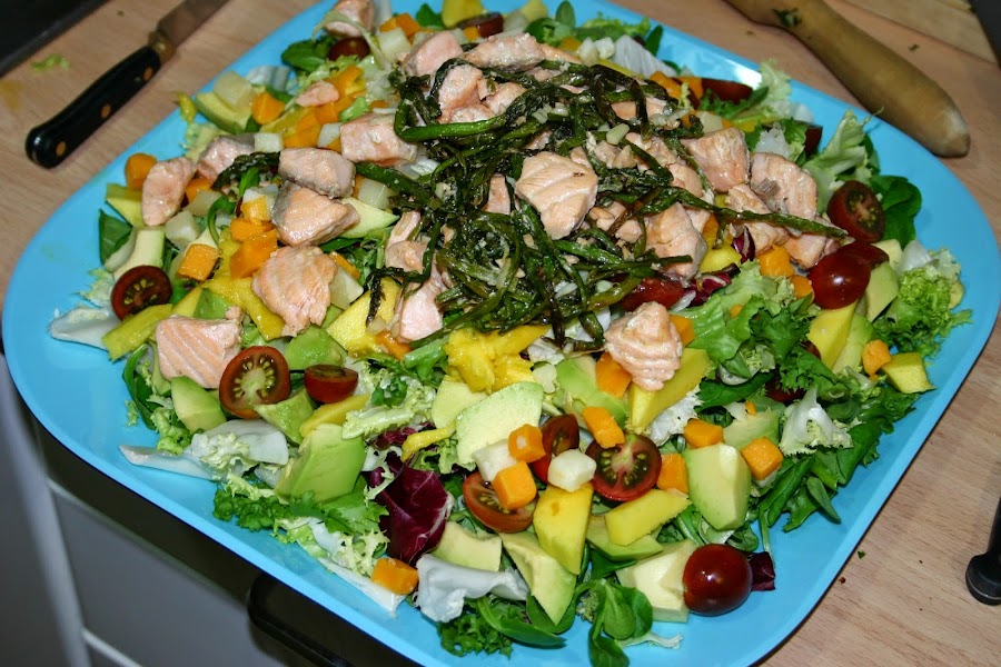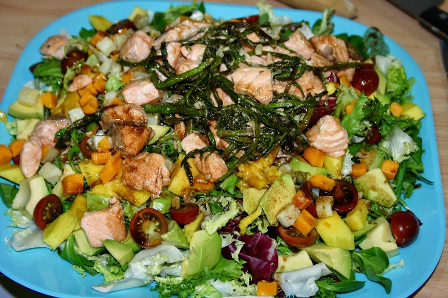 1 rodaja de salmon ya sin piel ni espinas y partida en tacos pequeños