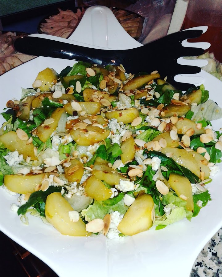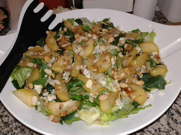 Pues hoy Lily Vera Gallardo nos trae una rica ensalada tibia con peras caramelizadas, queso azul y como toque crujiente unas ricas almendras tostadas..... rica verdad.
