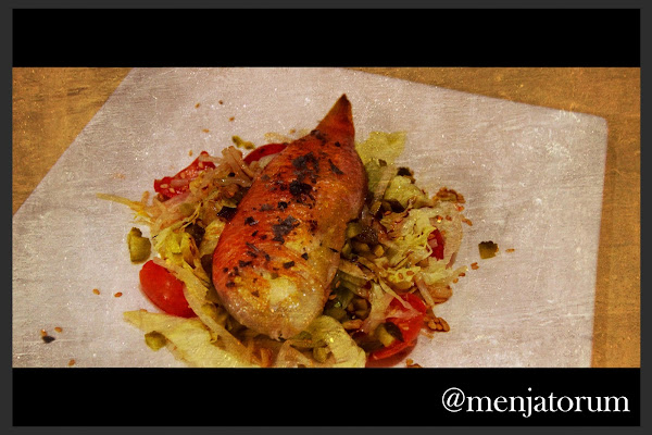 A la vinagreta que teníamos preparada añadir un par de cucharadas del aceite caliente de freír los raons, mezclar bien y verter por encima de la ensalada.