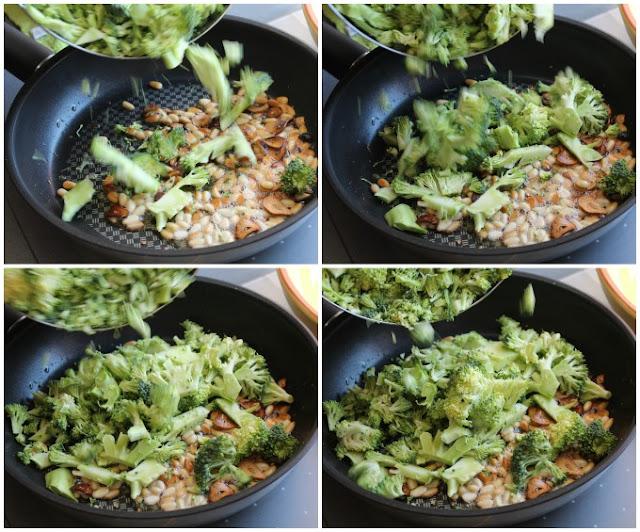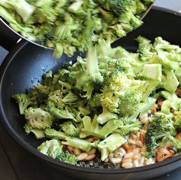 Agregamos el brócoli todo a la vez , y continuamos salteando a fuego alto durante unos dos o tres minutos, o hasta que el brócoli este de color verde brillante y apenas suavizado.