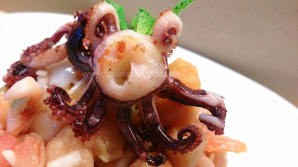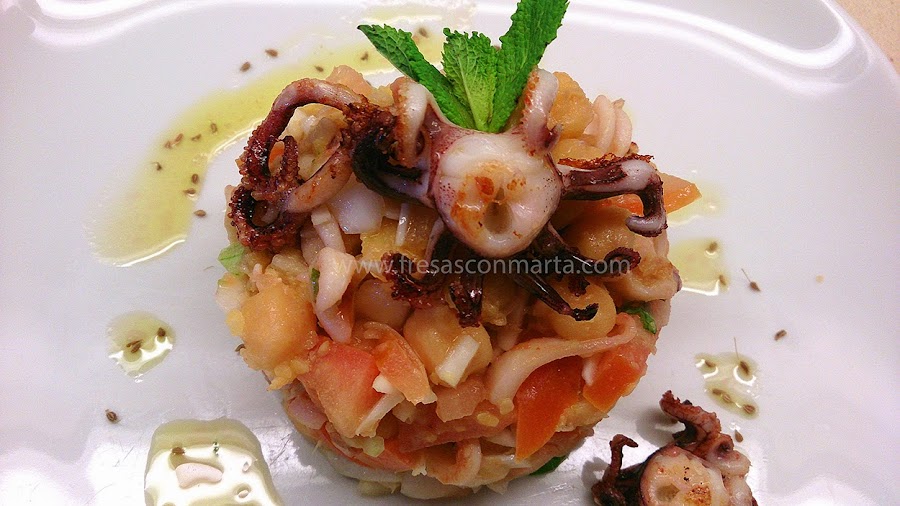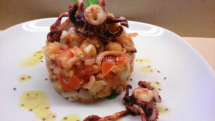 ENSALADA TIBIA DE GARBANZOS Y CHIPIRONES A LA VINAGRETA DE MENTA