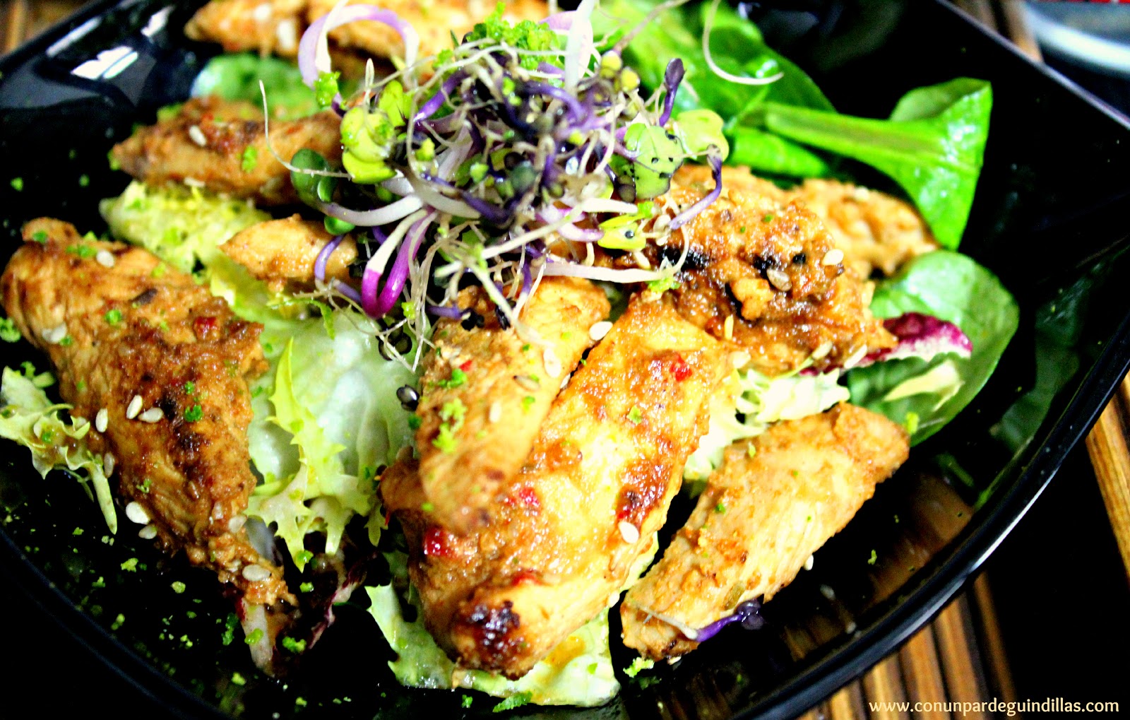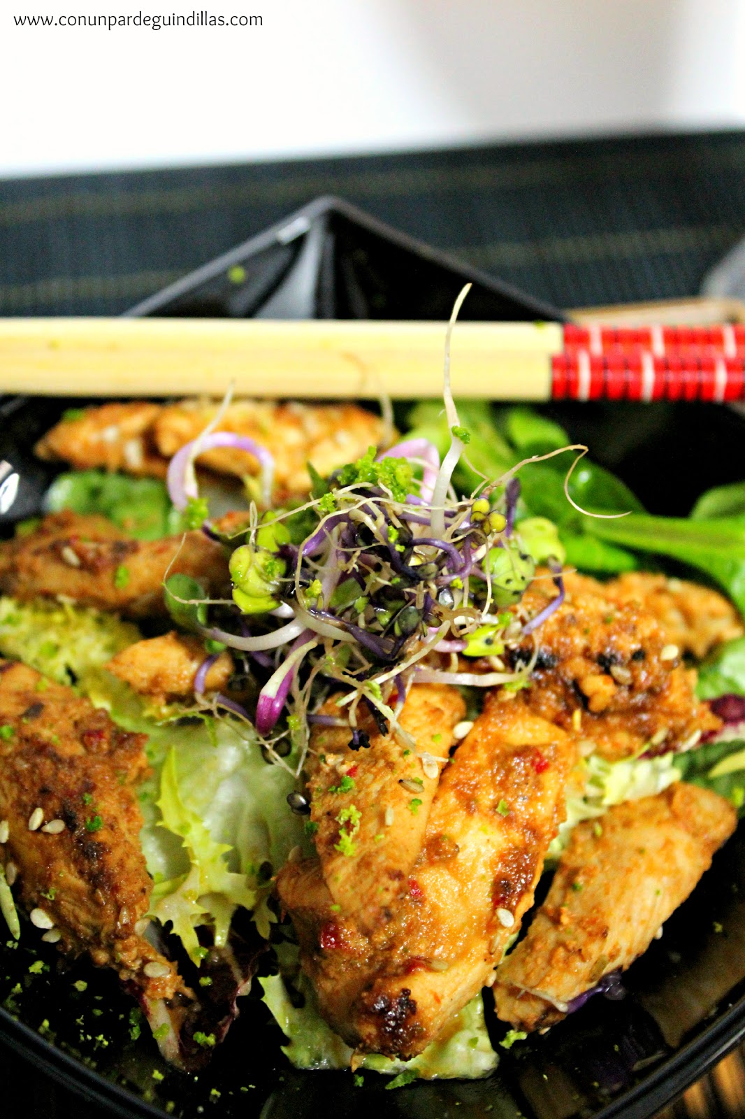 Esta receta es fácil de realizar, utiliza ingredientes económicos y se obtienen grandes resultados partiendo de una humilde pechuga de pollo y de una ensalada de cuarta gama. Vamos, ¡la cena perfecta!.