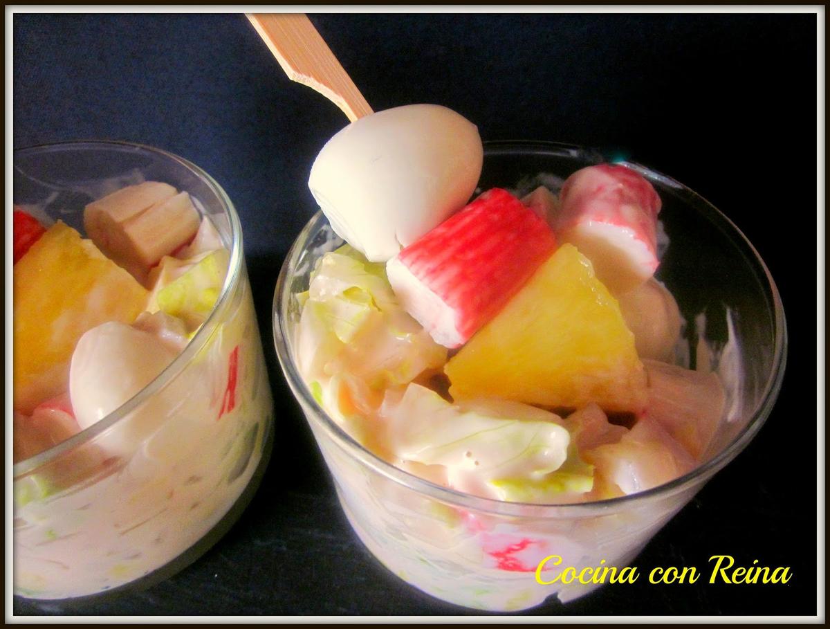 Este mes en el Asaltablog, asaltamos a Rebuscando en la despensa, me ha costado decidirme por una receta porque había muchas que me interesaban,pero esta ensalada tropical aunque es mas de verano, en Navidad también suele hacerse, por lo que me ha parecido que como estamos próximos a estas fiestas puede ser un aperitivo ideal.
