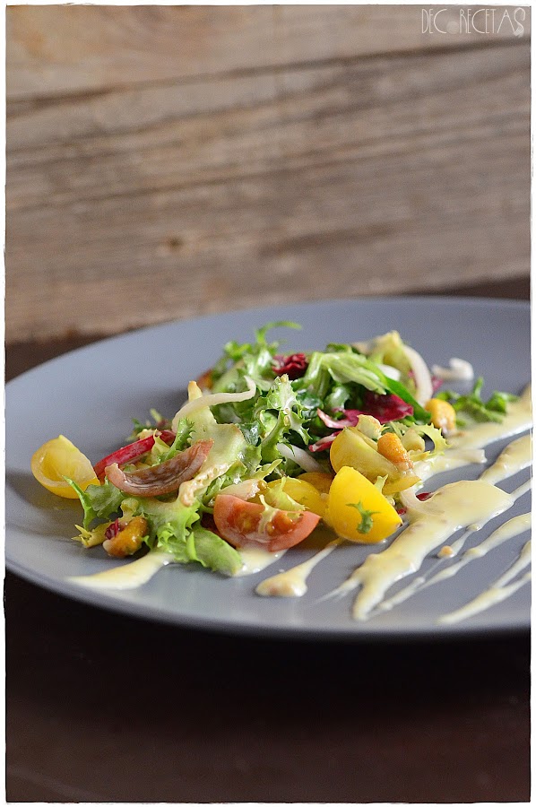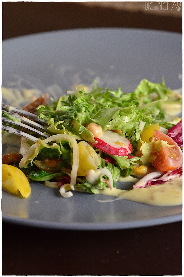 Como siempre, aliño al gusto al igual que los ingredientes de la ensalada, pero lo que si os recomiendo que no evitéis, son los frutos secos ya que aportan ese toque crujiente que le va fenomenal