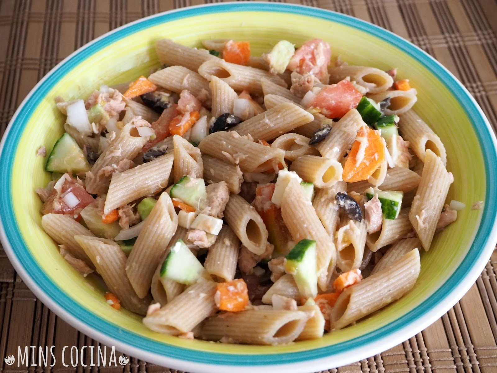 En verano apetecen más que nunca las ensaladas. A mí en concreto me apetecen además de plato único, completas, con numerosos ingredientes para no tener que comer nada más. Son frescas y nutritivas. Y sobre todo, están buenísimas. La de hoy, con pasta integral, además de completa es muy saludable, aumentando el aporte del fibra. Nos solemos olvidar de su importancia y en general nos quedamos cortos al añadirla a la dieta. Una manera estupenda y fácil es usar pasta integral. Está igual de buena que la otra y se nota en cuestión de salud. Con la receta de hoy os animo a que la probéis si no lo habéis hecho ya. Yo estoy encantada y ya no uso otra. Y en cuanto a la ensalada, qué os voy a decir, que queda deliciosa, con ingredientes frescos y veraniegos, salud y disfrute en un solo plato.