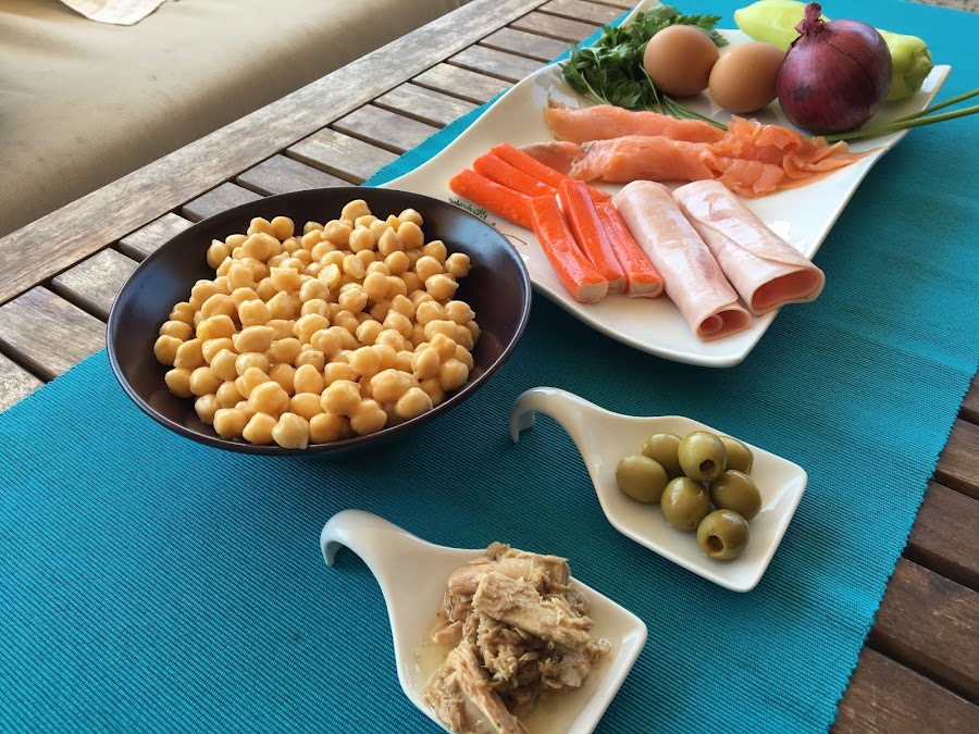 Mientras tenemos los huevos hirviendo escurriremos los garbanzos y los pondremos en un bol. A partir de ahora iremos cortando e incoporando los demás ingredientes. El orden no es imoportante, lo importante es cortar los ingredientes en trozos pequeños.