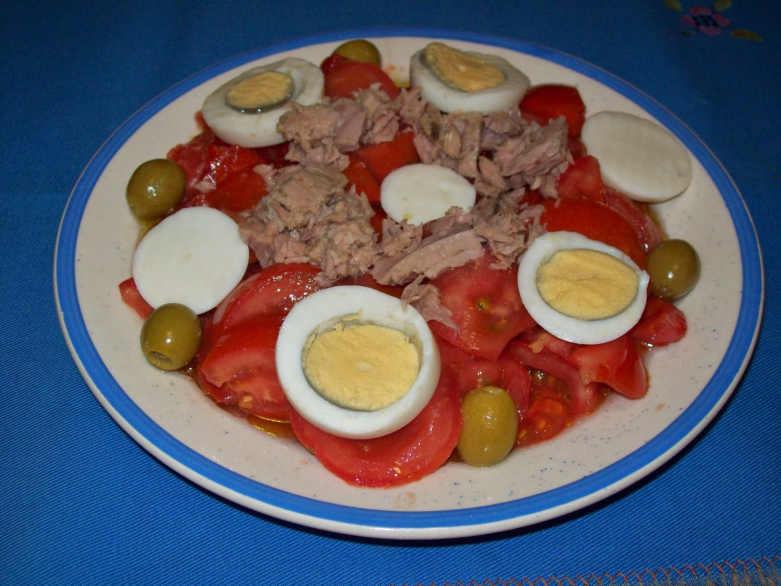Yo, por eso de contar calorías no me pongo aceite, con el aliño del atún me sirve y también dejo aparcadas las olivas. Pero si que me unto un poco de pan en el jugo que hacen todos los ingredientes juntos, esta irresistible.