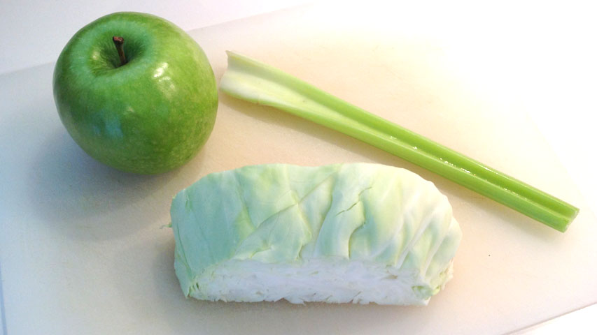 La col, la manzana Granny Smith y el apio que he usado para esta ensalada.
