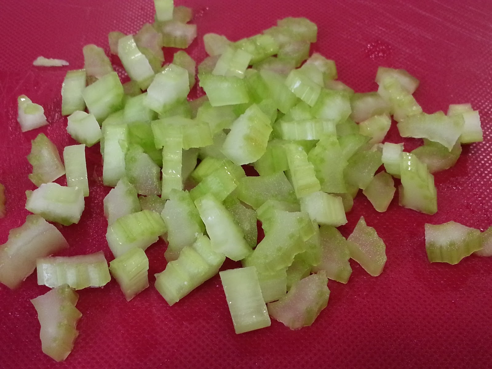 1. - En primer lugar troceamos el apio lo más pequeño posible. Vamos reservándolo en una ensaladera-