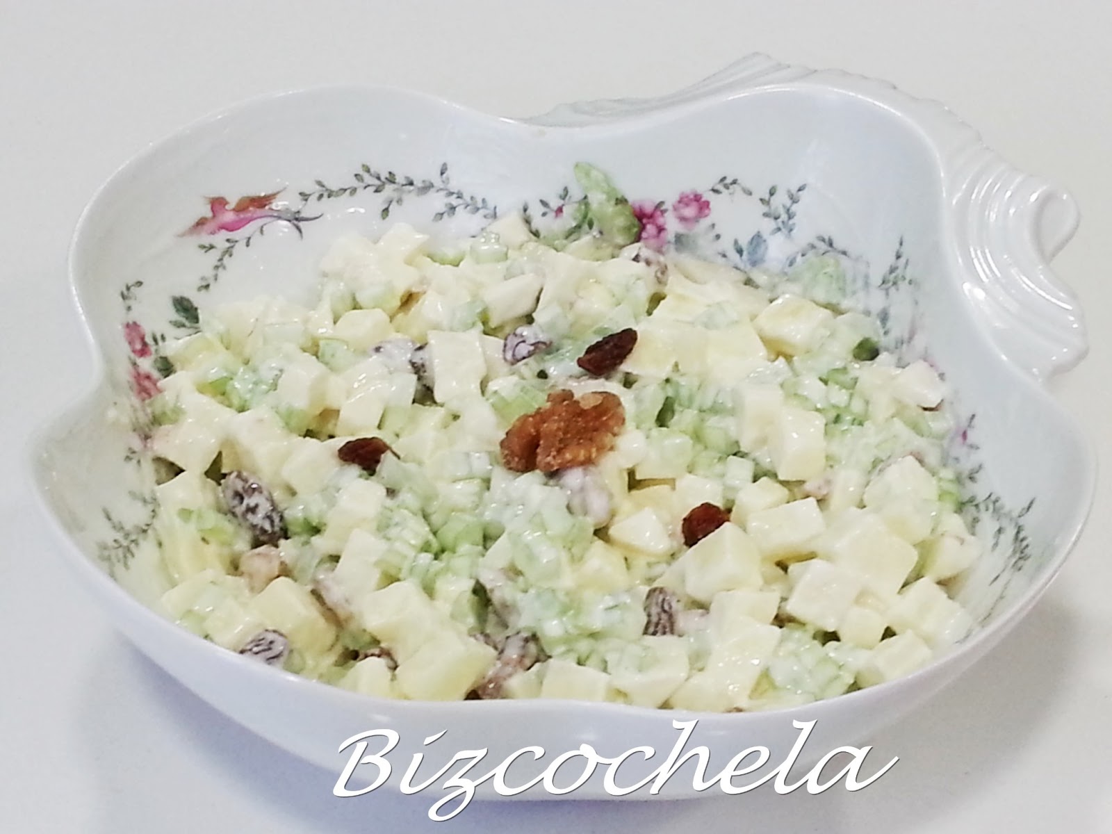 La mezcla de la manzana con el apio es riquísima, y queda una ensalada crujiente y refrescante, a mí personalmente me encanta.