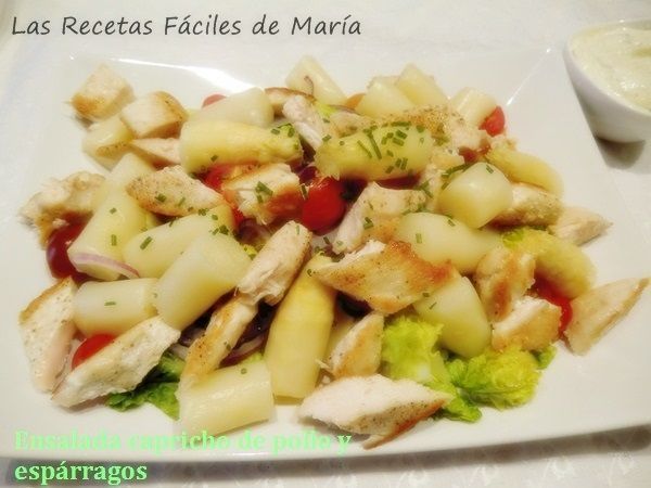 De nuevo con pollo, pero esta vez con espárragos y cambiando totalmente el resultado final de este "capricho" de ensalada, que seguro encantará a todos en casa.