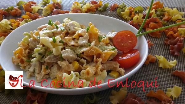 Ensalada de pasta con pollo y salsa de yogur