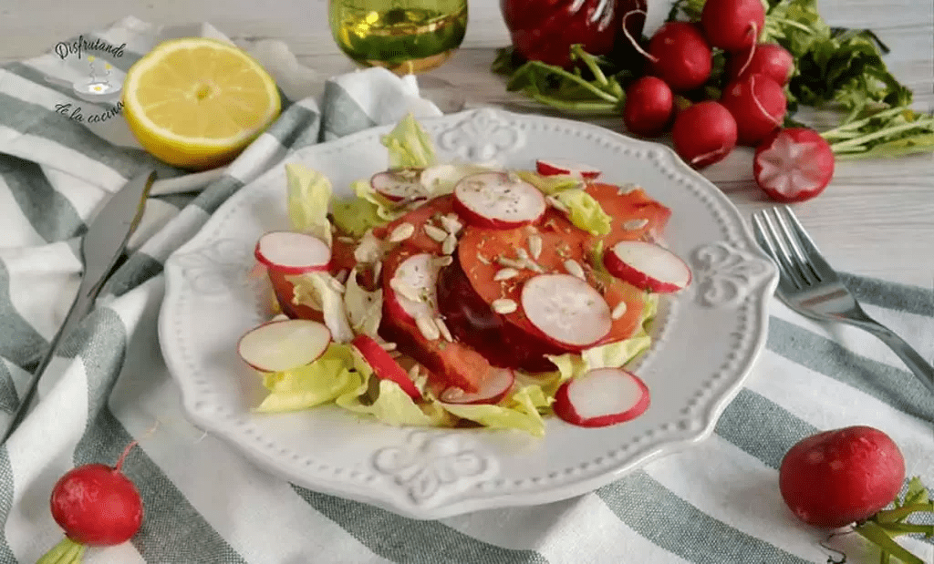 Y la ensalada de rábanos de Disfrutando de la cocina, perfecta para estos días en los que tenemos pocas ganas de meternos en la cocina y queremos preparar algo rápido, rico y vistoso.