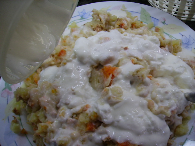 9.- Damos forma y cubrimos con una capa de mayonesa. Si nos falta podemos hacer más con las mismas medidas.