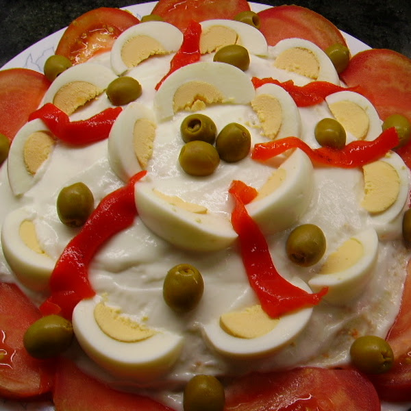 11.- También cortamos los huevos en gajos y decoramos el centro.
