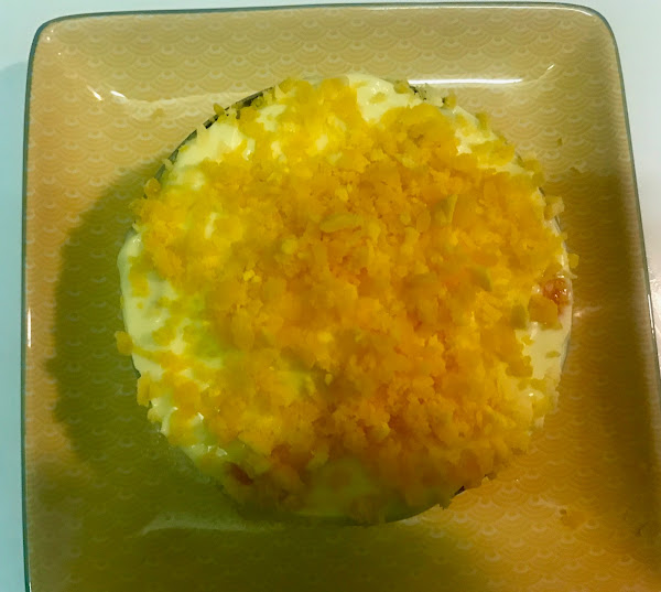 cubre de mayonesa (mejor casera) y ralla la yema de huevo por encima.