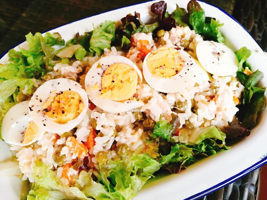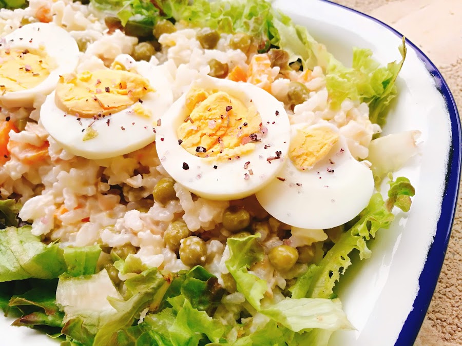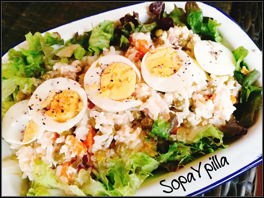 Para los amantes de arroz, probad de substituir la patata de la típica ensaladilla por arroz. Está alucinante, y es ideal para llevar fuera de casa, a la oficina, al campo o donde sea..es un plato de 10!