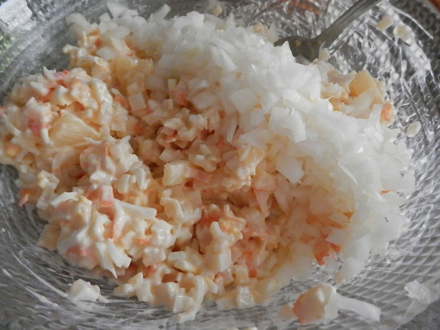Picamos los palitos de cangrejo.