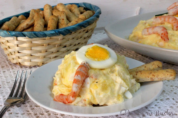 La ensaladilla de gambas es un plato muy típico de la parte de Cádiz y Huelva. Es una ensaladilla de patatas un poco diferente a la habitual, la ensaladilla rusa.