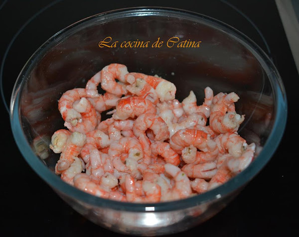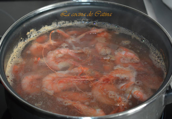 Ponemos agua a hervir con un poco de sal y cuando entre en ebullición, añadimos las gambas y las mantenemos un par de minutos con el agua hirviendo. Las sacamos del agua, las escurrimos y reservamos.