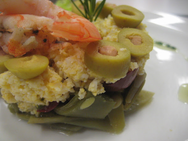 ENSALADILLA DE JUDÍAS VERDES Y LANGOSTINOS, SURIMI, GAMBAS, PULPO, BONITO...O LO QUE TENGAMOSIngredientes para 4 personas: