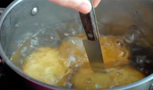También en una olla aparte cocemos 2 huevos: lo ponemos con agua fría y lo dejamos 12 minutos desde que comience el agua a hervir.