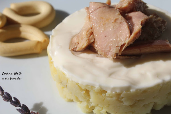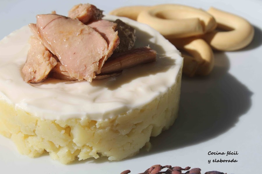 Es verano, que mejor momento para sentarse en un bar y tomarse una cerveza o un refresco con una tapa fría, por ejemplo una ensaladilla de patatas. La hay de mil y una combinaciones, yo he preparado esta-y no será la última-que estoy seguro que os va a gustar a rabiar, jeje. Es una ensaladilla, presentada de una forma diferente, en vez de mezclar la mayonesa con la patata, la pondremos encima y luego tu mismo la mezclas, además con una ventresca de atún, una receta fácil pero de sabor espectacular.