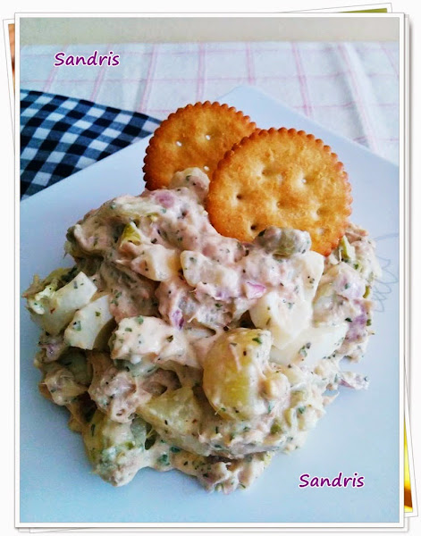 Pero enseguida entro yo en juego, la inventora de recetas :-D Y le doy un giro a ambas ensaladillas, tanto la clásica como la de su madre. Y este es el resultado...