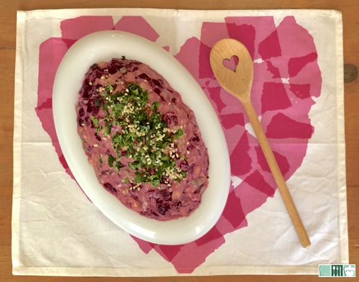 Es muy sencilla de preparar, solo que lleva unos tiempos de reposo, por lo que yo horneé las remolachas el día anterior y por la mañana la preparé para que reposara antes de comer.