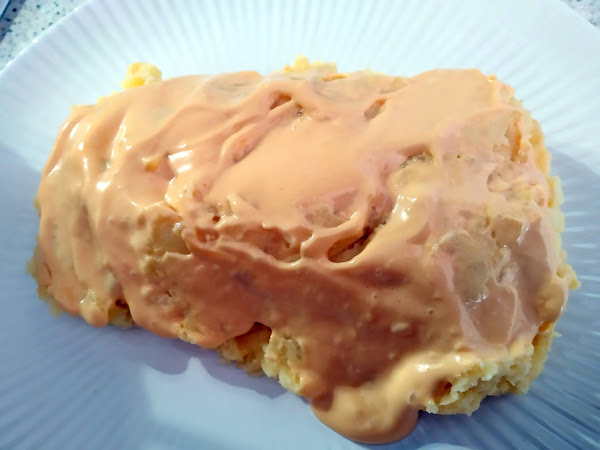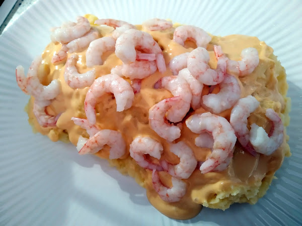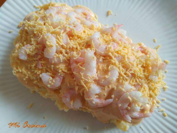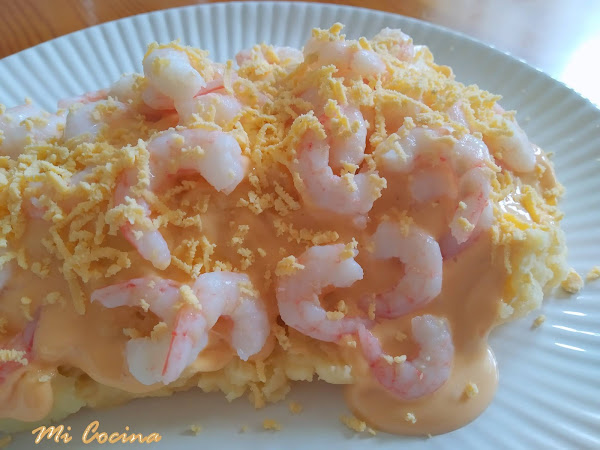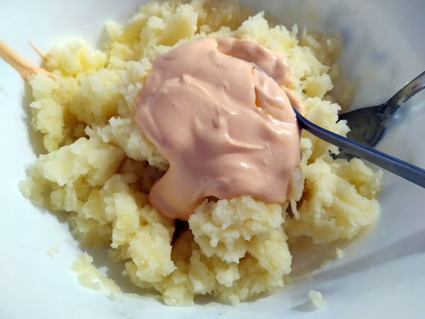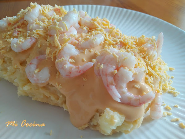 A la hora de servir, poner en el centro la patata, cubrir generosamente con el resto de la mayonesa,