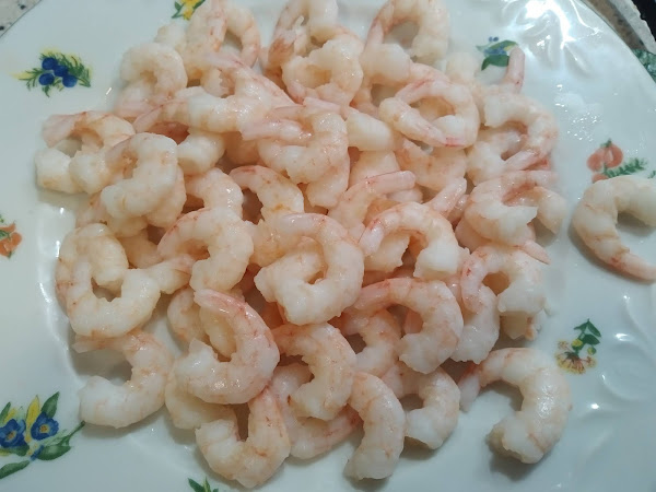 En un colador poner el cuerpo de las quisquillas e introducirlos en el agua hirviendo, dejar unos segundos, que dé un hervor y retirarlas. Una vez frías pelar el cuerpo de las quisquillas, reservando la carne.
