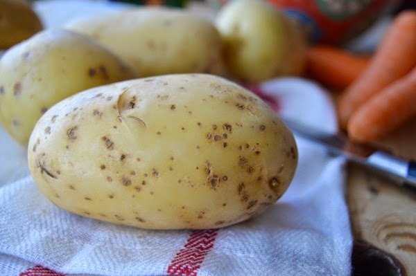When the carrots are baked, take them out, let cool and peel them. Cut into dice and set aside.