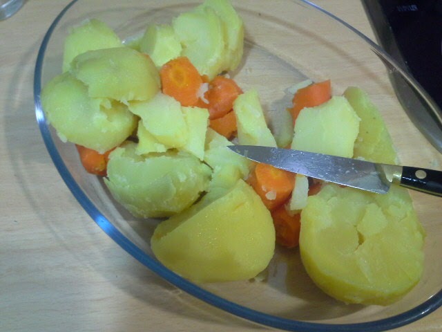 Cuando ya esten cocidas las patatas y las zanahorias ...