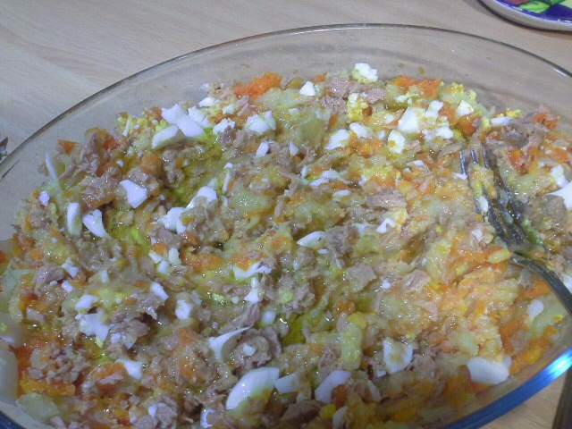en la foto os pongo pimientos del piquillo por si quereis echarle tambien, a mi no me gusta, pero dicen que queda muy bien