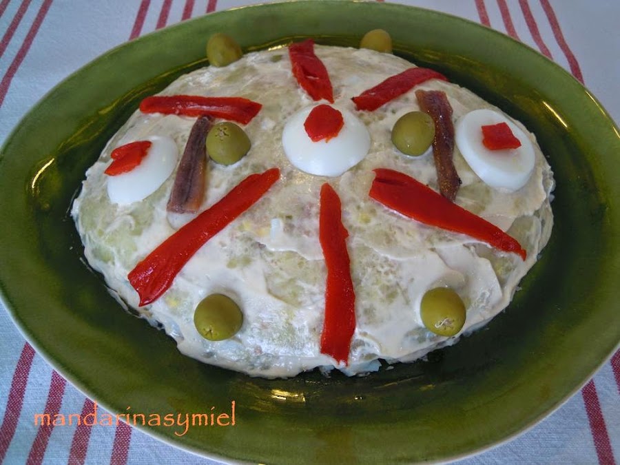 Cubre ahora con mahonesa toda la ensaladilla y adorna como tú quieras.