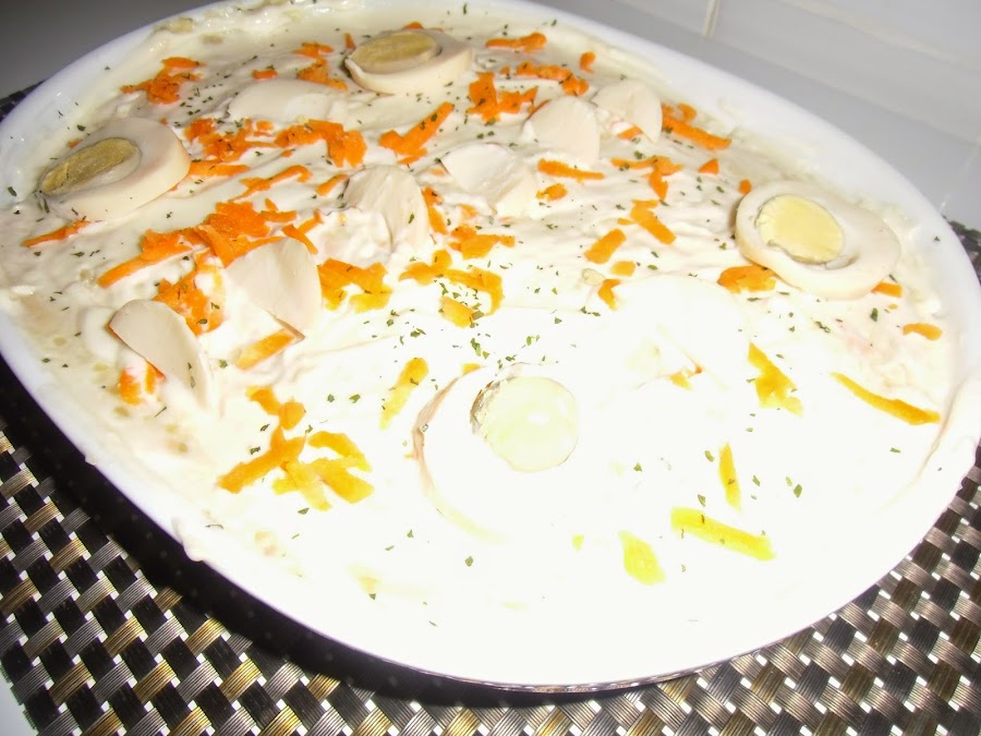 Para acabar decoramos con los 2 huevos restantes y un poco de zanahoria rayada.